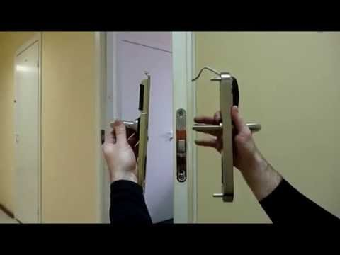 - Устанавливается сам замок, панель снаружи и блок изнутри. Всё фиксируется так, чтобы пользоваться дверью было максимально удобно.